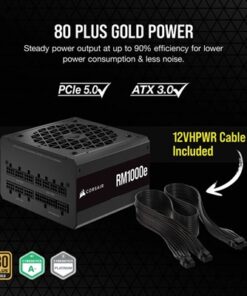 CORSAIR RMe Series Fully Modular Low-Noise Power Supplies with ATX 3.0 and PCIe 5.0 compliance provide quiet, reliable power with 80 PLUS Gold efficiency to a wide variety of PC builds.